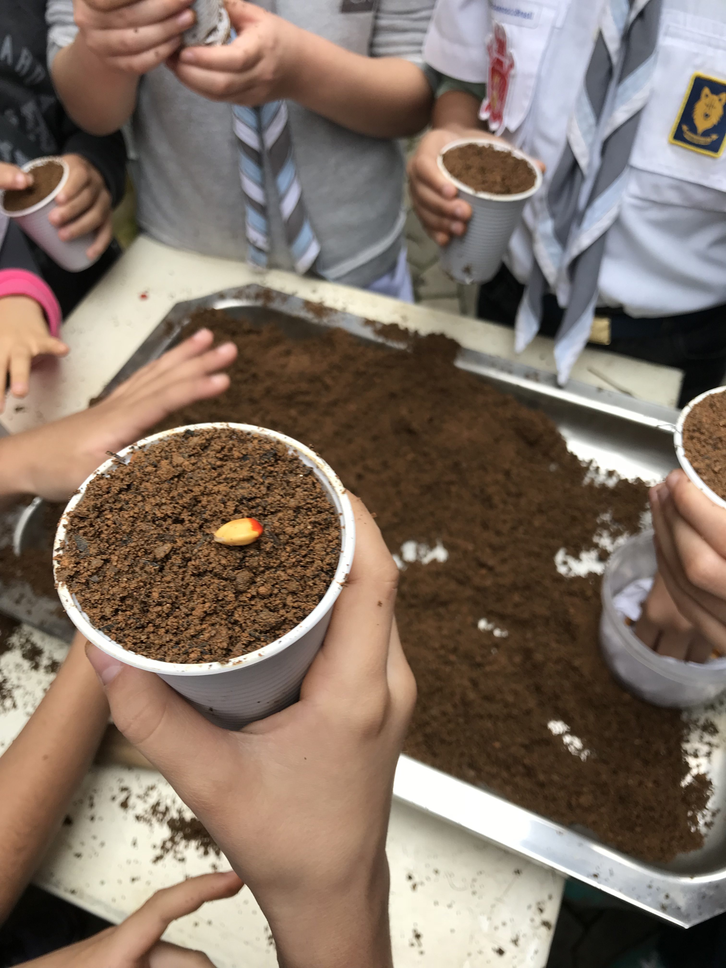 Ao final da palestra, os lobinhos foram ensinados a preparar mudas de Ipê, reutilizando copos descartáveis e saquinhos de biscoito que retornaram para a fábrica. Em seguida, foi feita uma visita ao canteiro de mudas da fábrica e enfim feita a degustação dos deliciosos biscoitos.