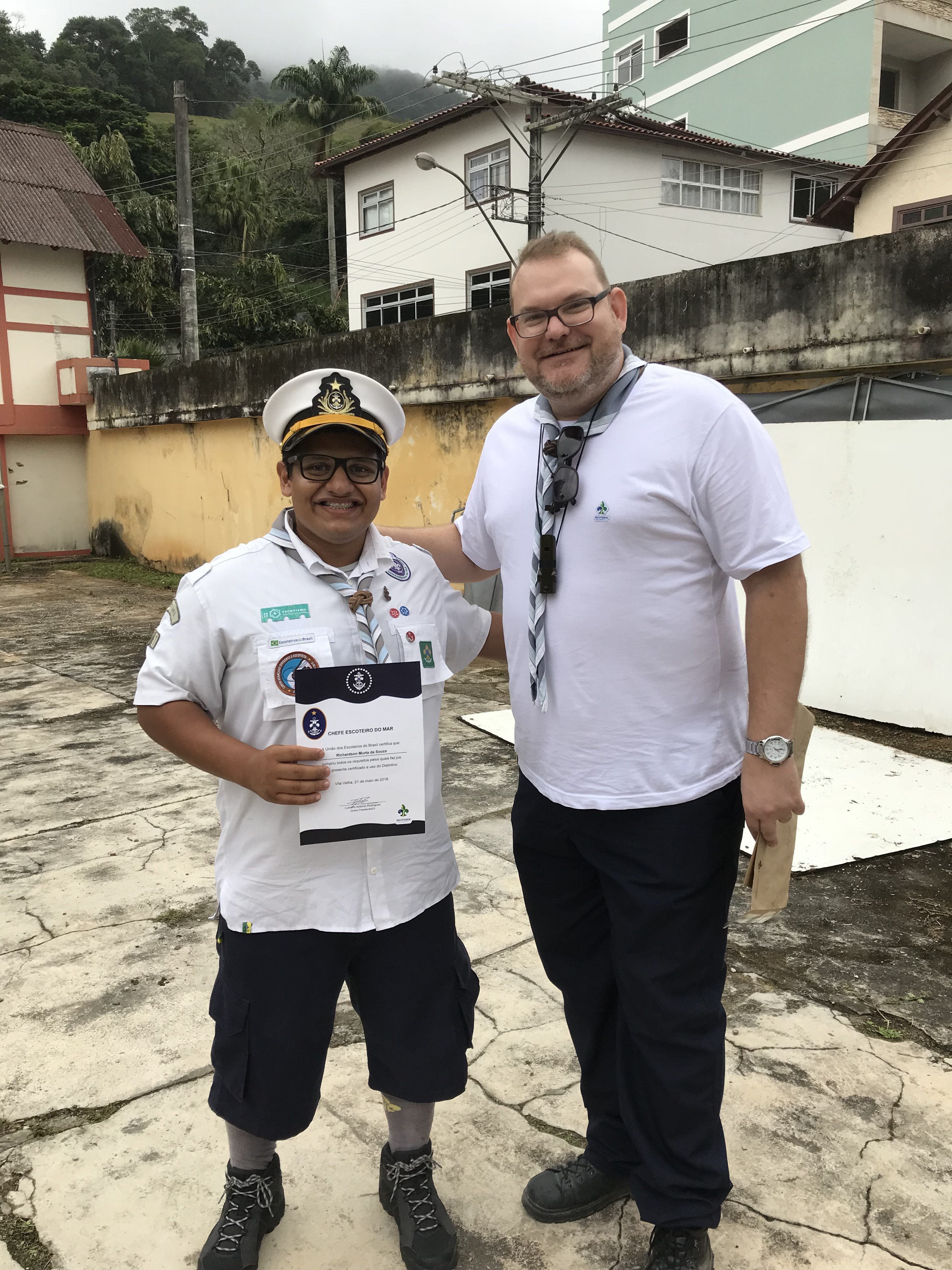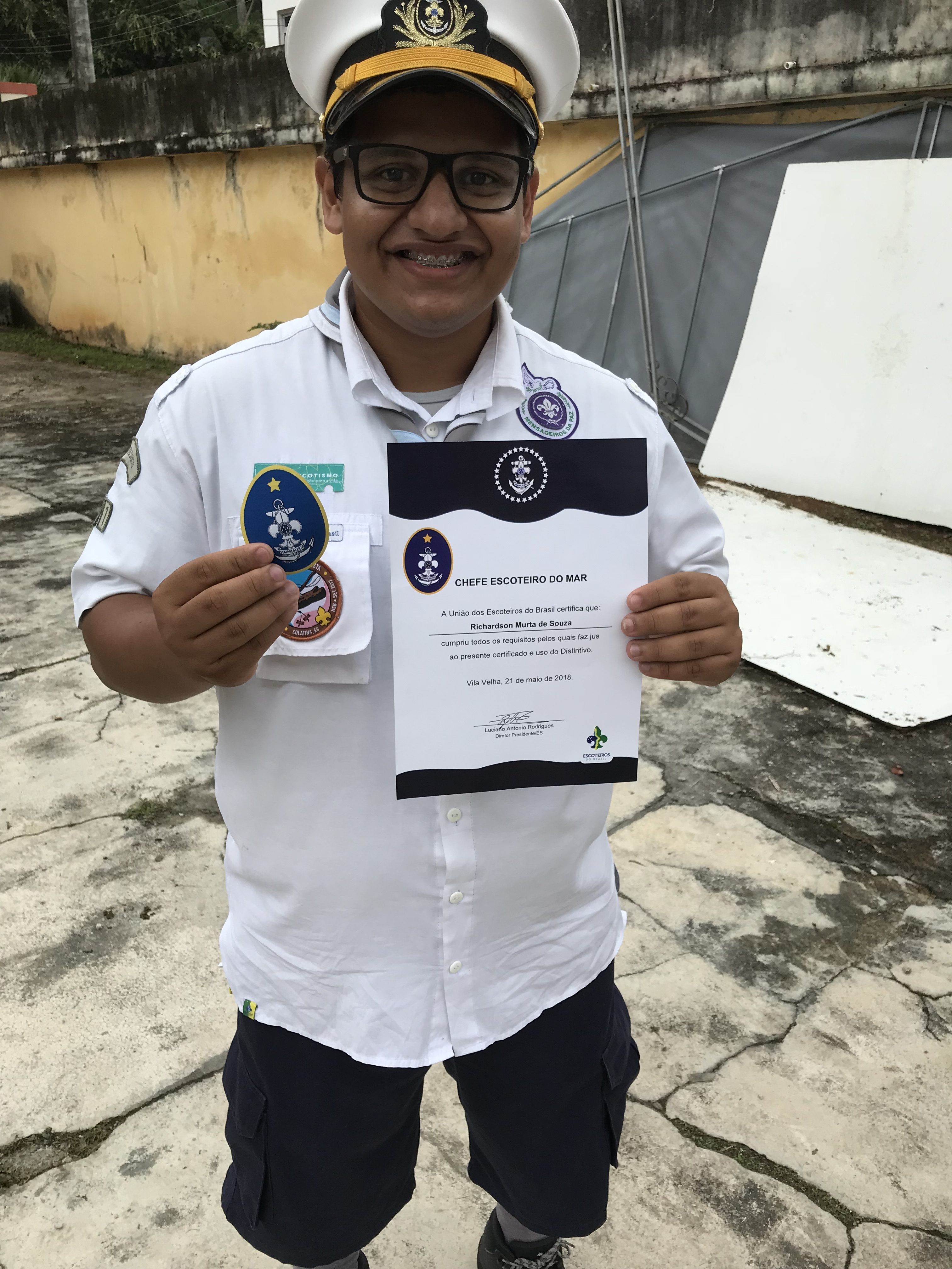 Ao término do almoço, tivemos a entrega do distintivo Chefe Escoteiro do Mar para o nosso querido Chefe Richardson Murta, chefe de seção da Tropa Escoteira Mista Épsilon.