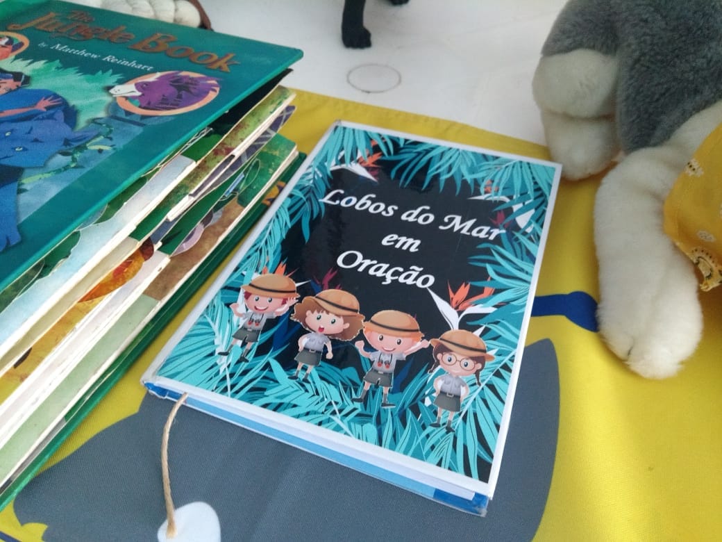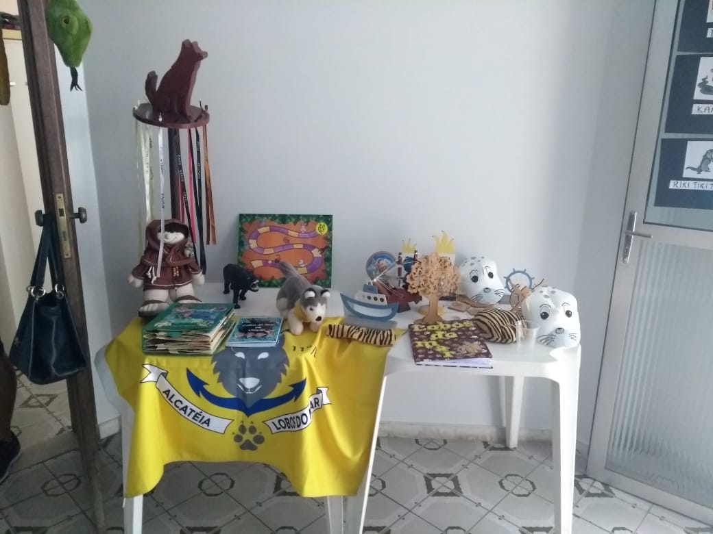 Outro destaque foi uma mesa montada com algumas lembranças da Alcateia. Nosso Totem estava lá, assim como os demais troféus conquistados, objetos de atividades da alcateia, o manto da chefe Sylvia, a bandeira do Ramo Lobinho, entre outros. Estes objetos ajudam a contar um pouco da história e das conquistas da Alcateia Lobos do Mar. Atentamente eles observaram e conheceram um pouco mais da trajetória dos Lobinhos que passaram e deixaram sua marca no 11º/ES GEMar Ilha de Vitória.
