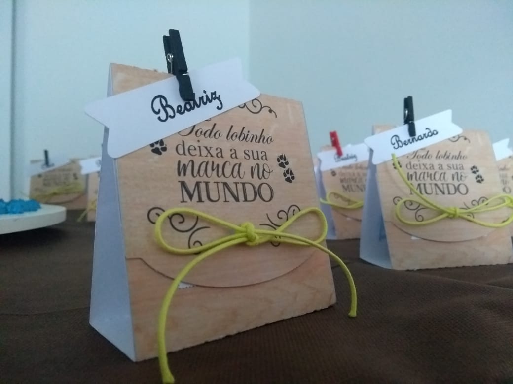 A tarde foi chegando ao fim, mas nossos lobinhos ainda ganhariam mais um presente. Chefe Louise, carinhosamente confeccionou uma sacolinha personalizada com o nome de cada chefe e lobinho. Dentro dela, um docinho e um marcador de livro em formato de lobo! Uma surpresa que certamente utilizarão e que literalmente deixará esse dia marcado para sempre na memória de todos da Alcateia.