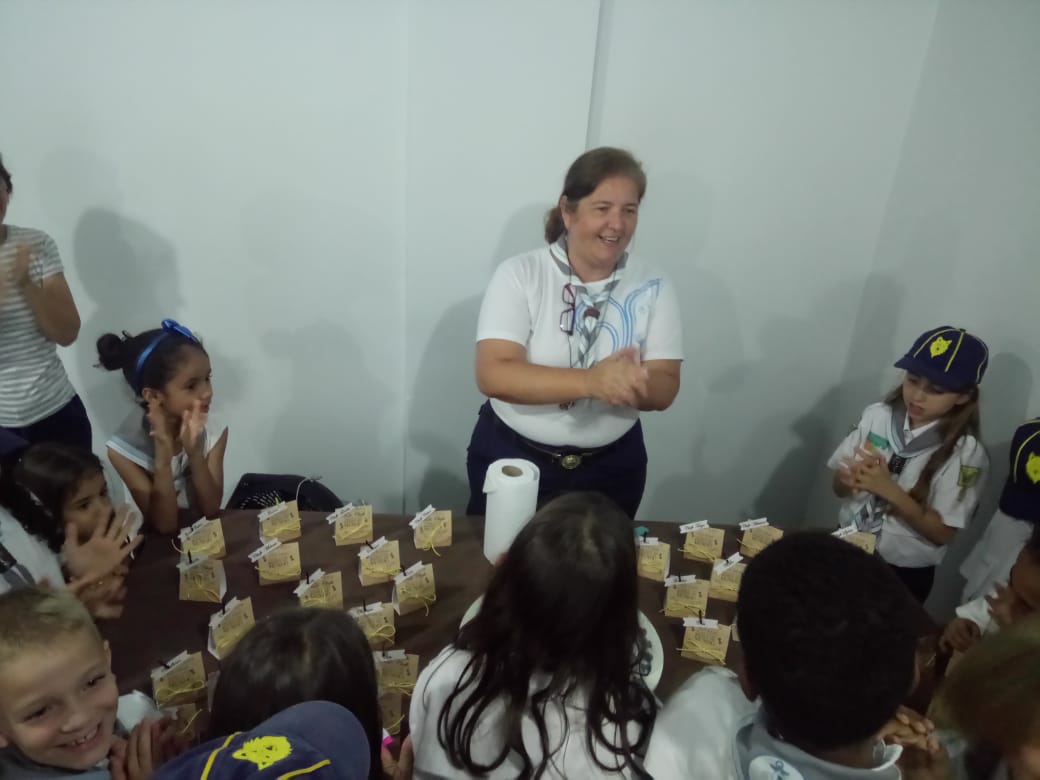 A comemoração foi inesquecível! Eles chegaram para a atividade e se surpreenderam com o que foi preparado para eles: havia pipoca, cachorro quente, bolo e sessão de cinema. O filme, claro, não poderia ser outro: Mowgli – o menino lobo. Este filme é utilizado como inspiração para a organização do Ramo Lobinho. Eles puderam conhecer a história, os personagens e suas personalidades e identificar no filme o contexto de algumas atividades realizadas por eles. Em silêncio e sentados, apreciaram o momento e curtiram a surpresa.