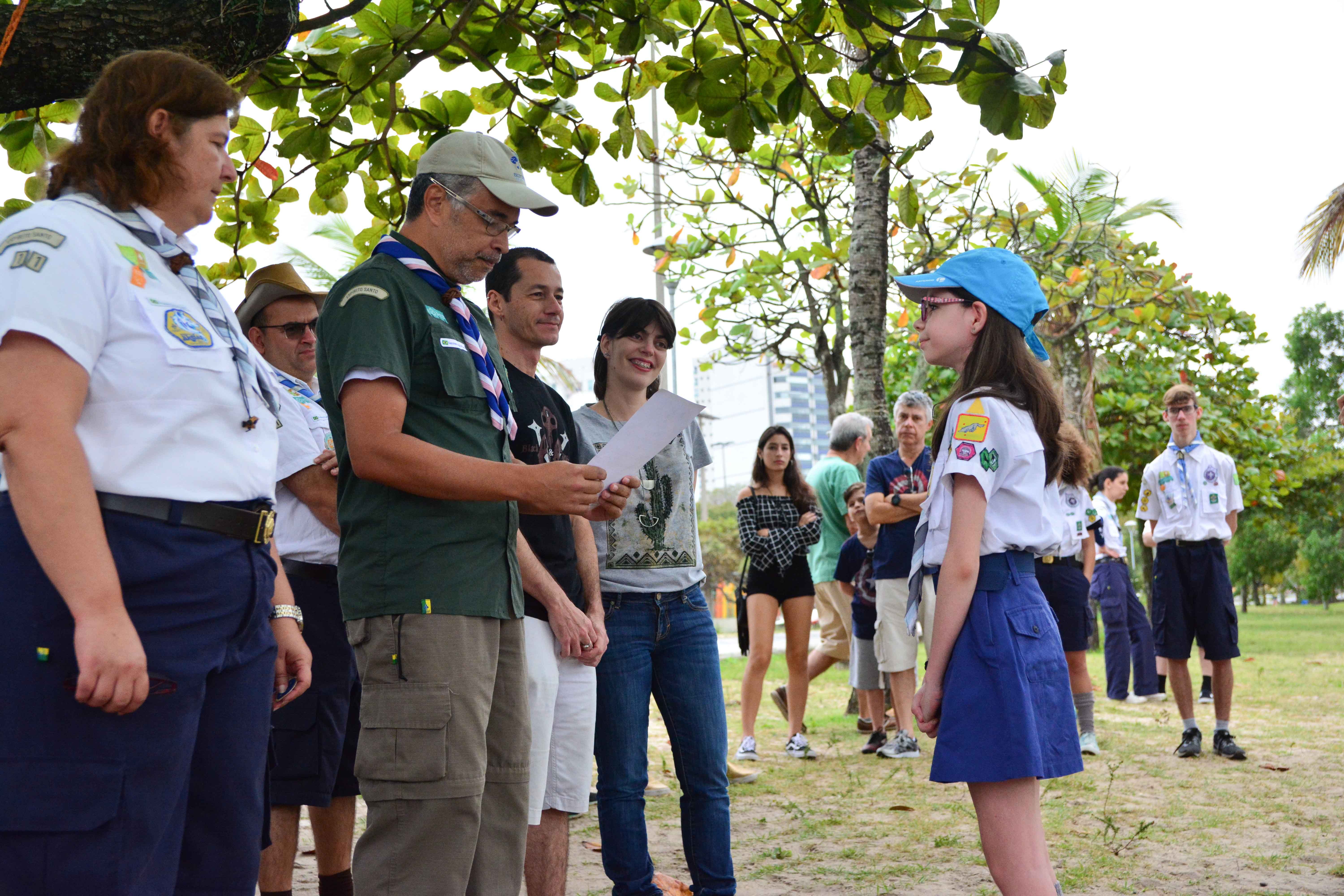 Logo após o hasteamento da bandeira foi a hora da entrega de certificados e distintivos de reconhecimento. A emoção toma conta do ar! A primeira a receber foi a lobinha Maria Luíza Ventura Leão, que recebeu o Distintivo de Cruzeiro do Sul. Das mãos do chefe Giovani Abrantes, representante da UEB Região Espírito Santo, sob o olhar orgulhoso da Akelá Sylvia Lessa, perante seus pais e demais integrantes do grupo, Malu, como é carinhosamente chamada pelos colegas da alcateia, recebeu o sonhado distintivo do Ramo Lobinho. Mais um grau máximo na nossa alcatéia! Parabéns, uma conquista que orgulha todo o grupo!