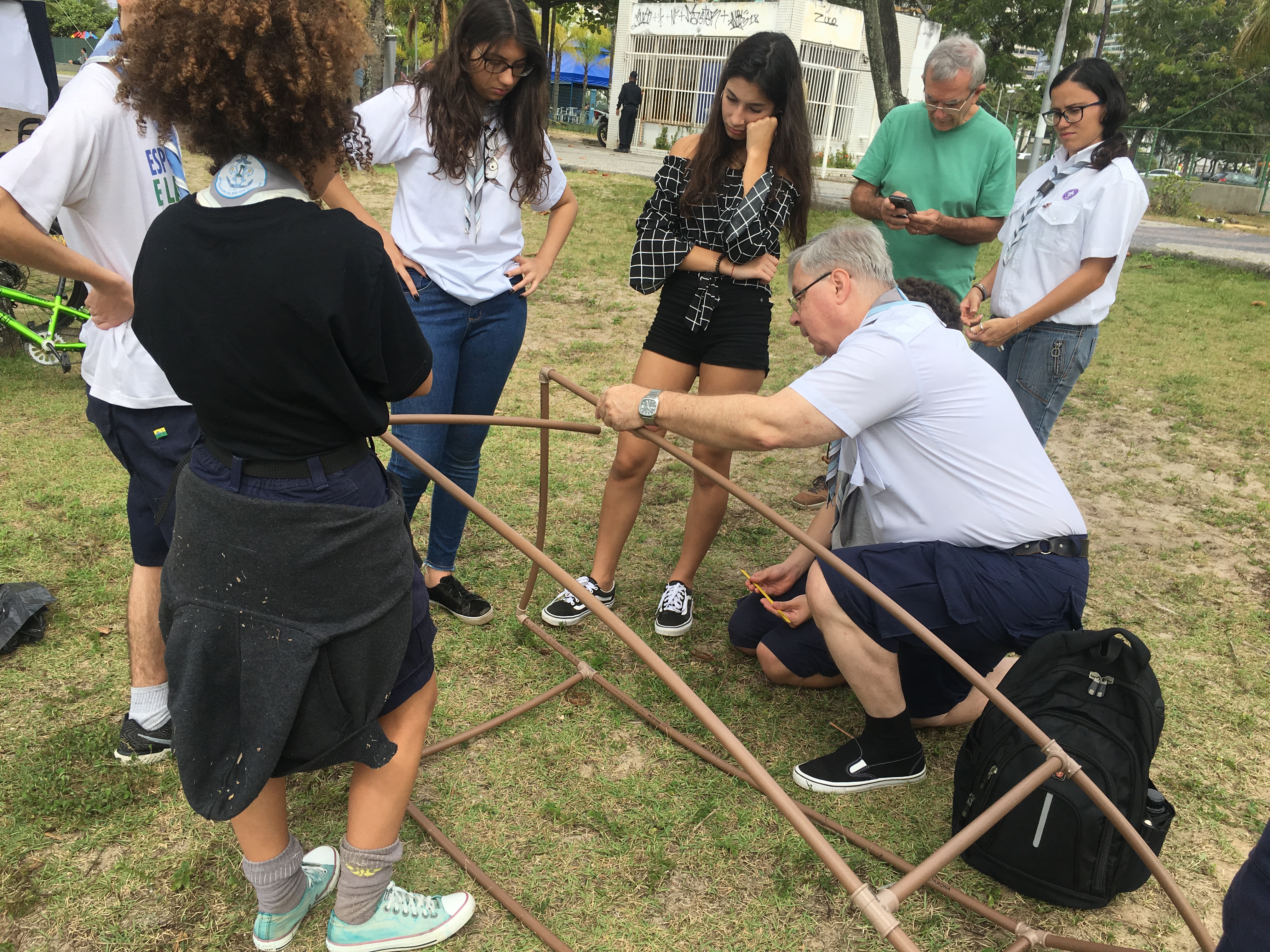 Os seniores deram início ao desafio de construir um barco com cano de PVC e lona, e já contaram com a ajuda dos novos integrantes da Tropa. Sob a orientação das chefes Thaís e Andressa eles cortaram, lixaram e encaixaram os canos dando formato ao barco. Mas para que consigam navegar com segurança precisaram discutir, repensar e fazer algumas mudanças e adaptações no projeto. Para colaborar com os jovens, Chefe Albert Sholl trouxe sua experiência e expertise e contribui dando dicas com perguntas para aguçar a curiosidade dos jovens para analisar, pesquisar e acertar a embarcação.