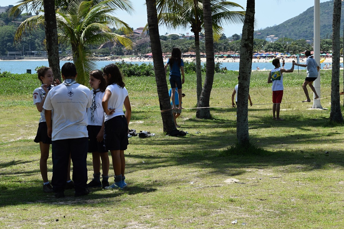 Além do slack line e do buldogue, a Patrulha Épsilon teve um momento de exploração do conhecimento mútuo e de discussão sobre suas progressões e sobre a prática de jogos escoteiros.
