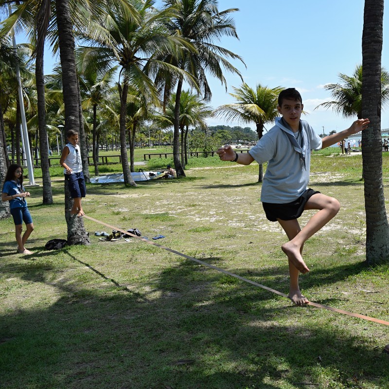 A atividade da Patrulha Jacaré foi a iniciação ao slack line. Para tanto, a monitora dessa patrulha, Thamirys Francez, convidou o seu irmão mais velho, Gustavo Francez, para montar os aparelhos necessários à realização da atividade, esticando a corda elástica entre dois coqueiros a uma altura apropriada para a prática por iniciantes. Thamirys, seu irmão e demais jovens da Patrulha Jacaré ajudavam os demais nos primeiros passos e na prática de acrobacias e equilíbrio.