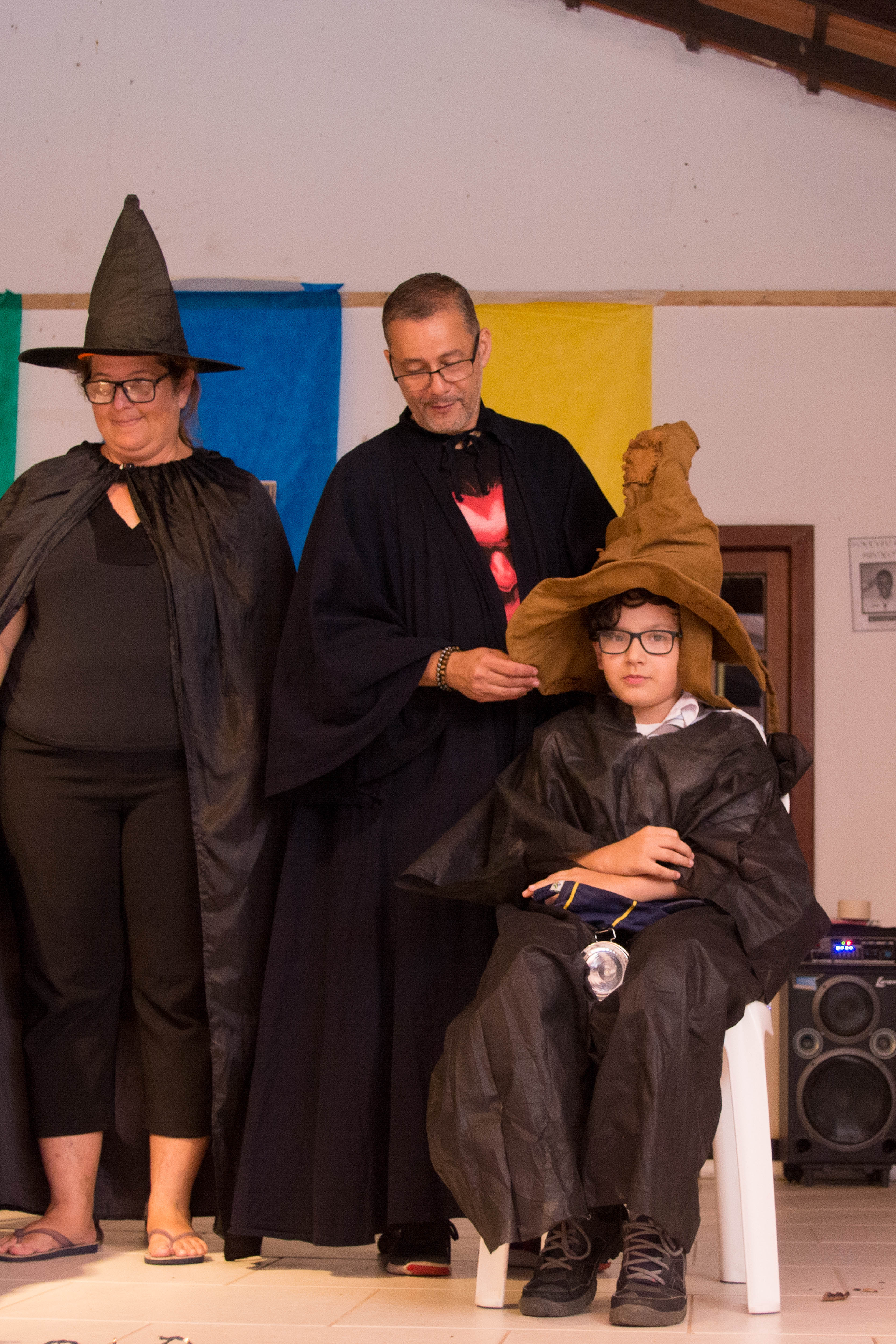 Após o jantar, o momento esperado há semanas pelos jovens: a hora do desfile de fantasias!! Cada jovem deveria desfilar e mostrar a fantasia (capa, varinha e vassoura) preparados por eles especialmente para esse acampamento! Havia capas confeccionadas em diversos materiais, de TNT à veludo; varinhas mágicas construídas com simples gravetos ou até luminosas; e vassouras que só faltavam voar, de tão perfeitas para esse uso singular.