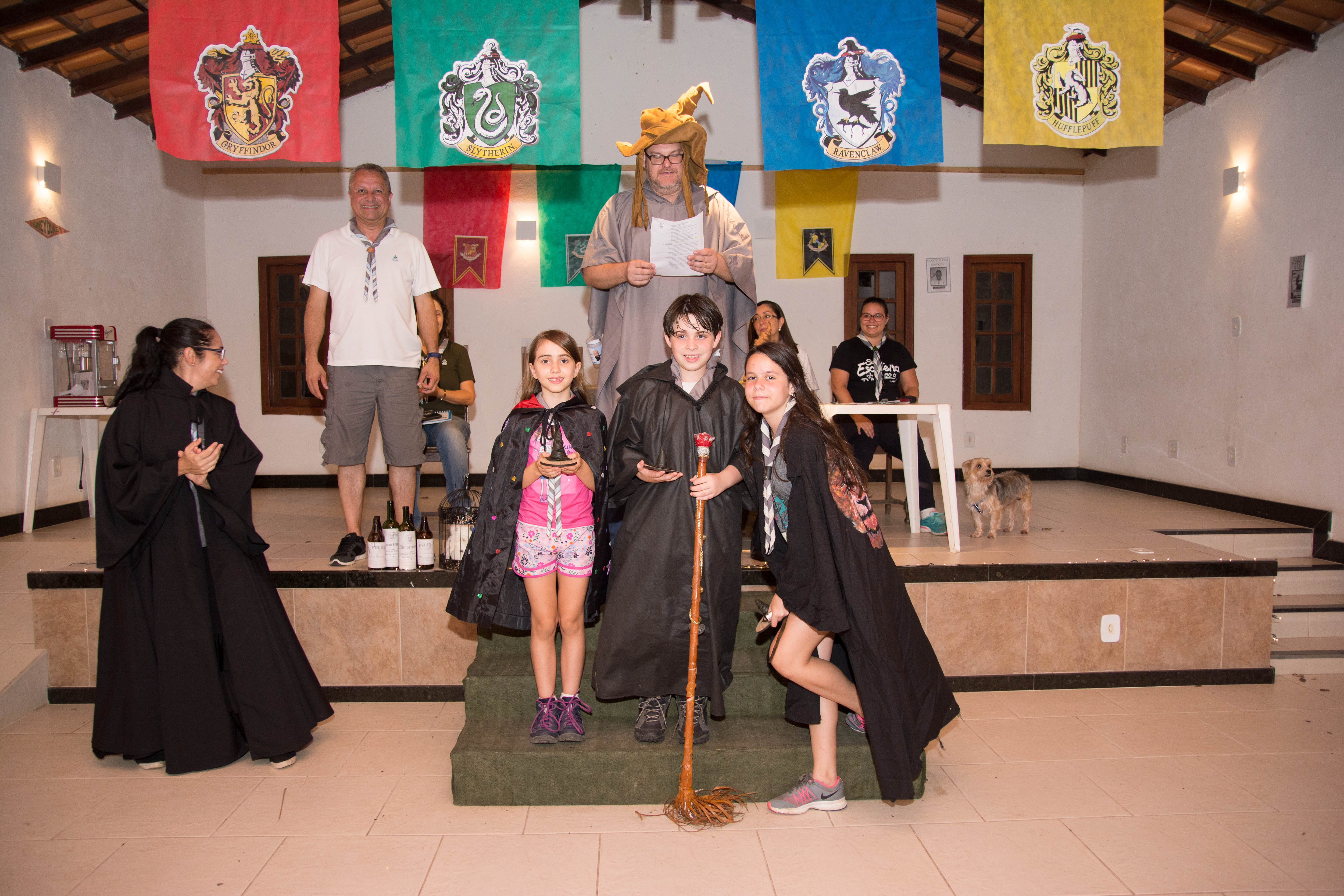 Noite de sexta feira, 30 de novembro. Tão logo os jovens chegam ao Sítio Xodó, local de realização do acampamento, foram recebidos pela chefia que, já totalmente no clima de Hogwarts, estava caraterizada, com mantos e lampiões. Lobinhos, escoteiros e seniores receberam as boas vindas e seguiram para a área de alimentação, para degustar um delicioso lanche preparado especialmente para eles.