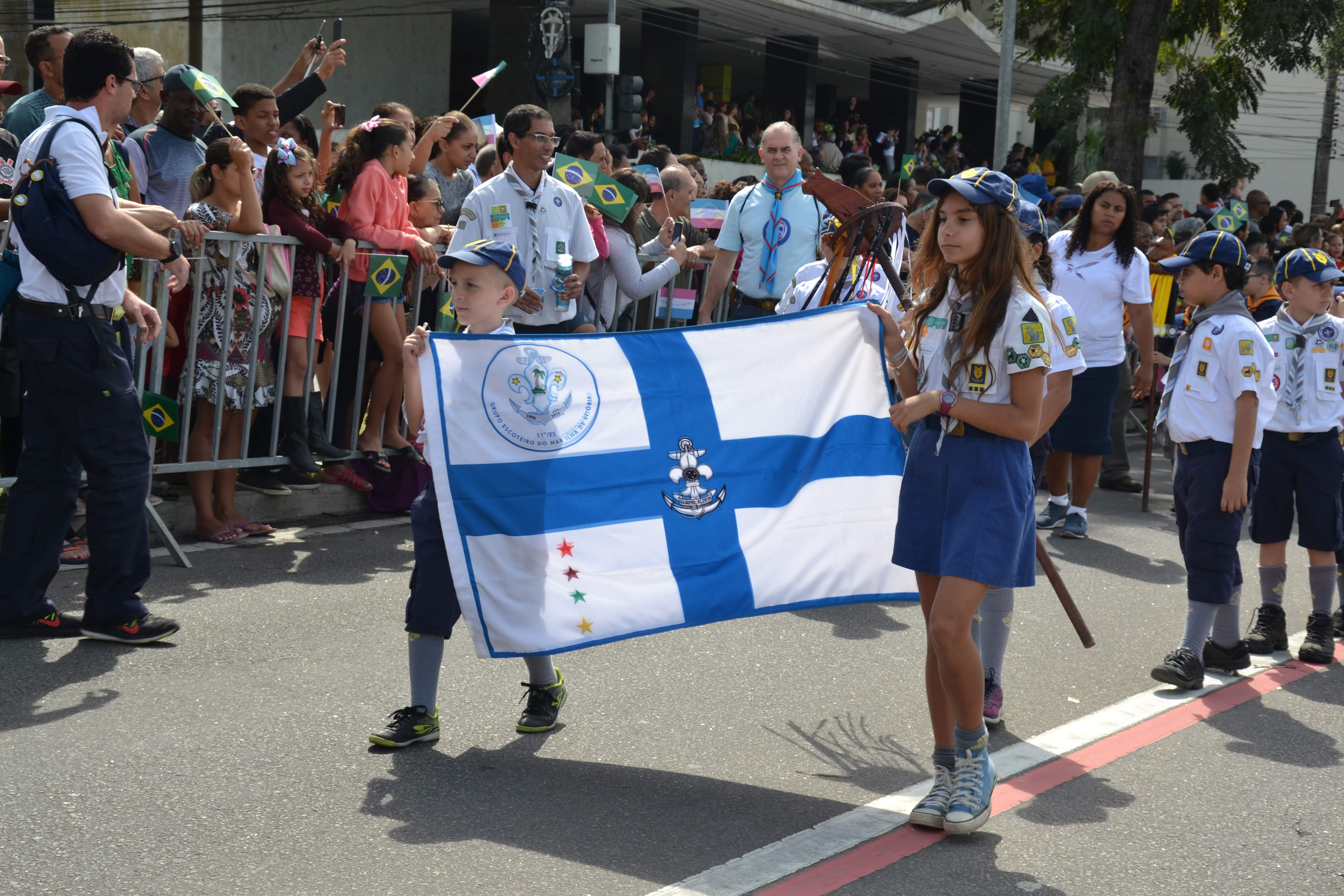 Nosso grupo, assim como outros vários grupos escoteiros do ES, participaram do desfile cívico, representando o Movimento Escoteiro aqui do Espírito Santo. Ao som do Hino dos Escoteiros – Rataplan do Arrebol, nossas crianças, chefes e pais apoiadores seguiram pela avenida Beira-Mar, demonstrando todo o orgulho em participar desse tão relevante movimento de promoção da educação e cidadania.