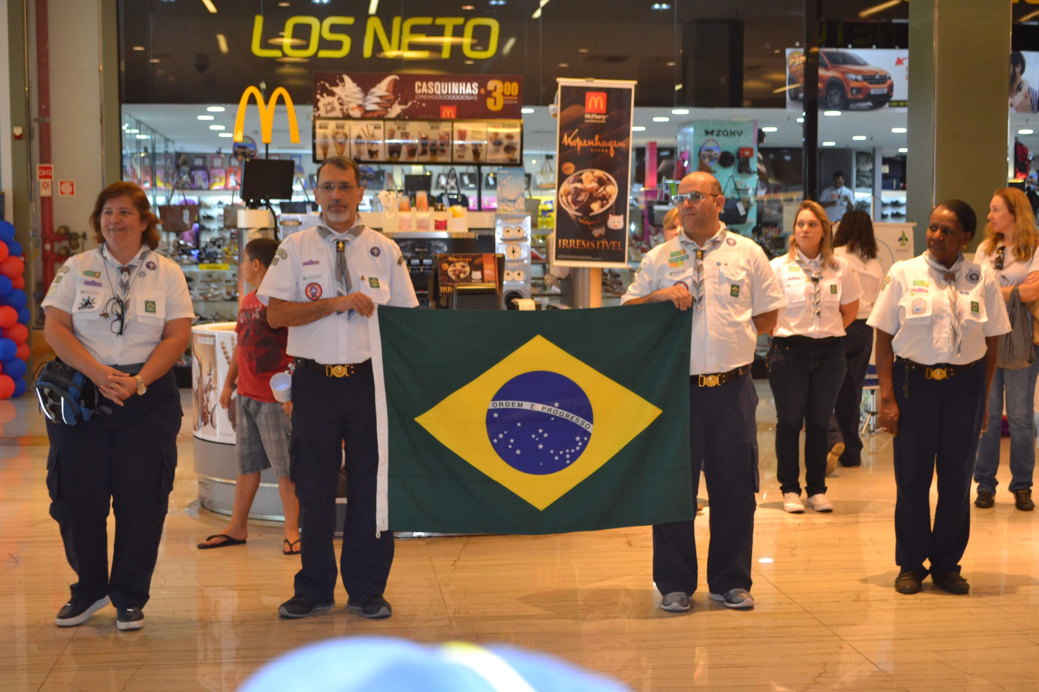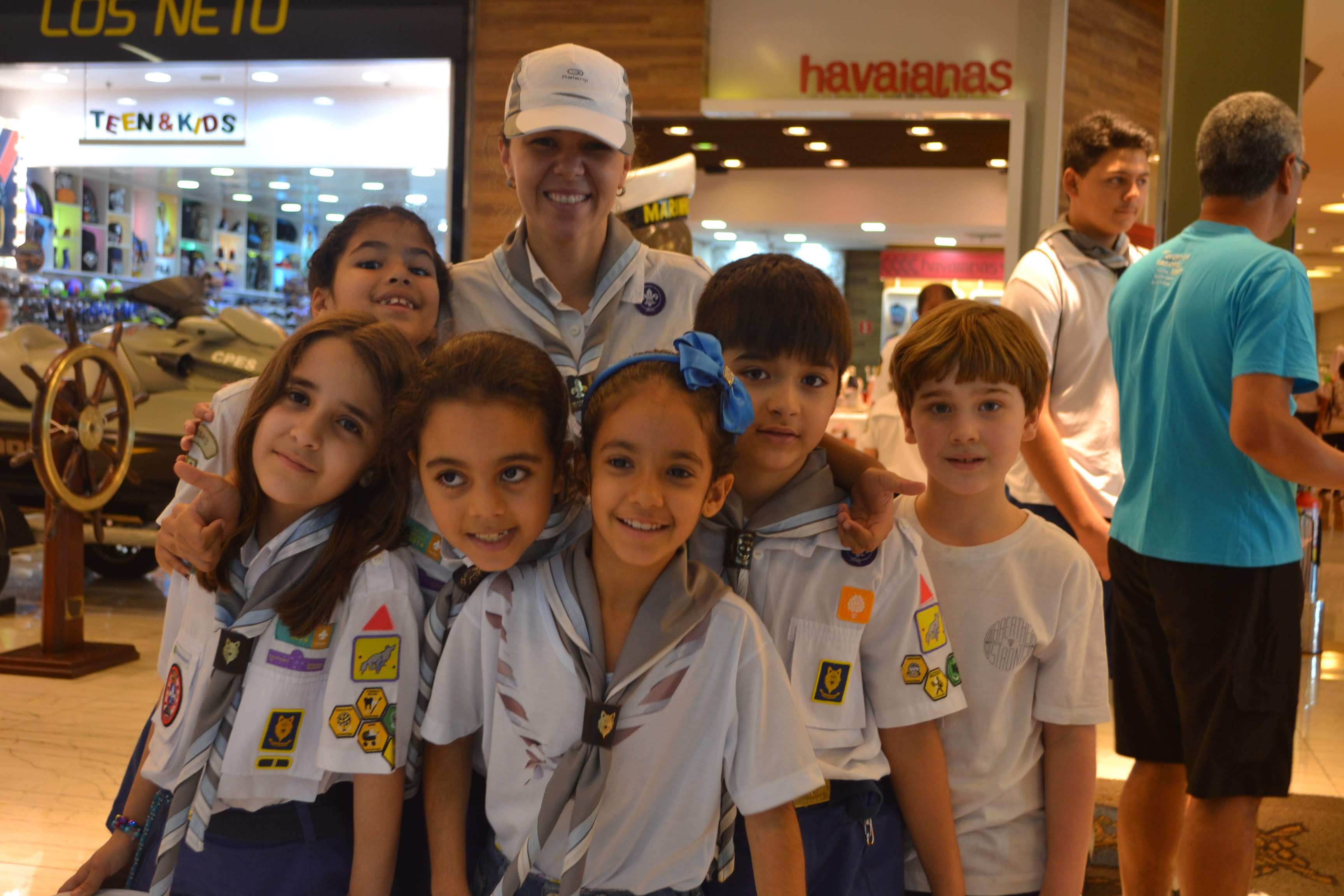 Nossos escoteiros e chefes percorreram os corredores do shopping, informando aos visitantes sobre o Movimento Escoteiro.