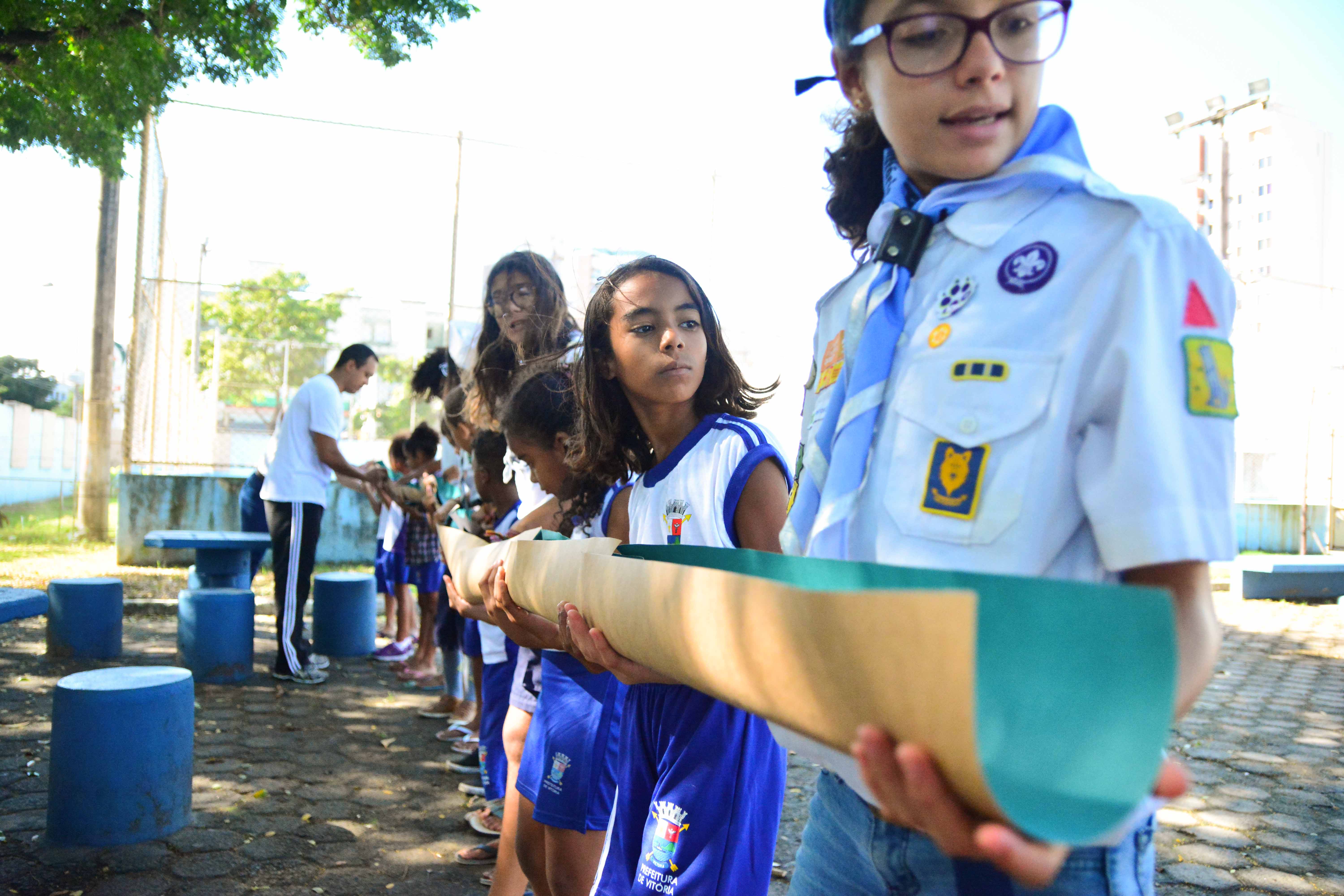 O evento teve início as 8:30h e término as 11:30h. Foram momentos de muita interação entre os jovens do Ilha de Vitória e os alunos da escola. Nas atividades feitas com as crianças e adolescentes da escola foram trabalhadas seis áreas de desenvolvimento: afetivo, social, caráter, espiritual, intelectual e físico. Teve Roda de Canção, atividade de Bússula, Torre de copos, Corrida da Kaá, Corrida de Bambu, Jogo da Velha, Cama de Gato, entre outros.