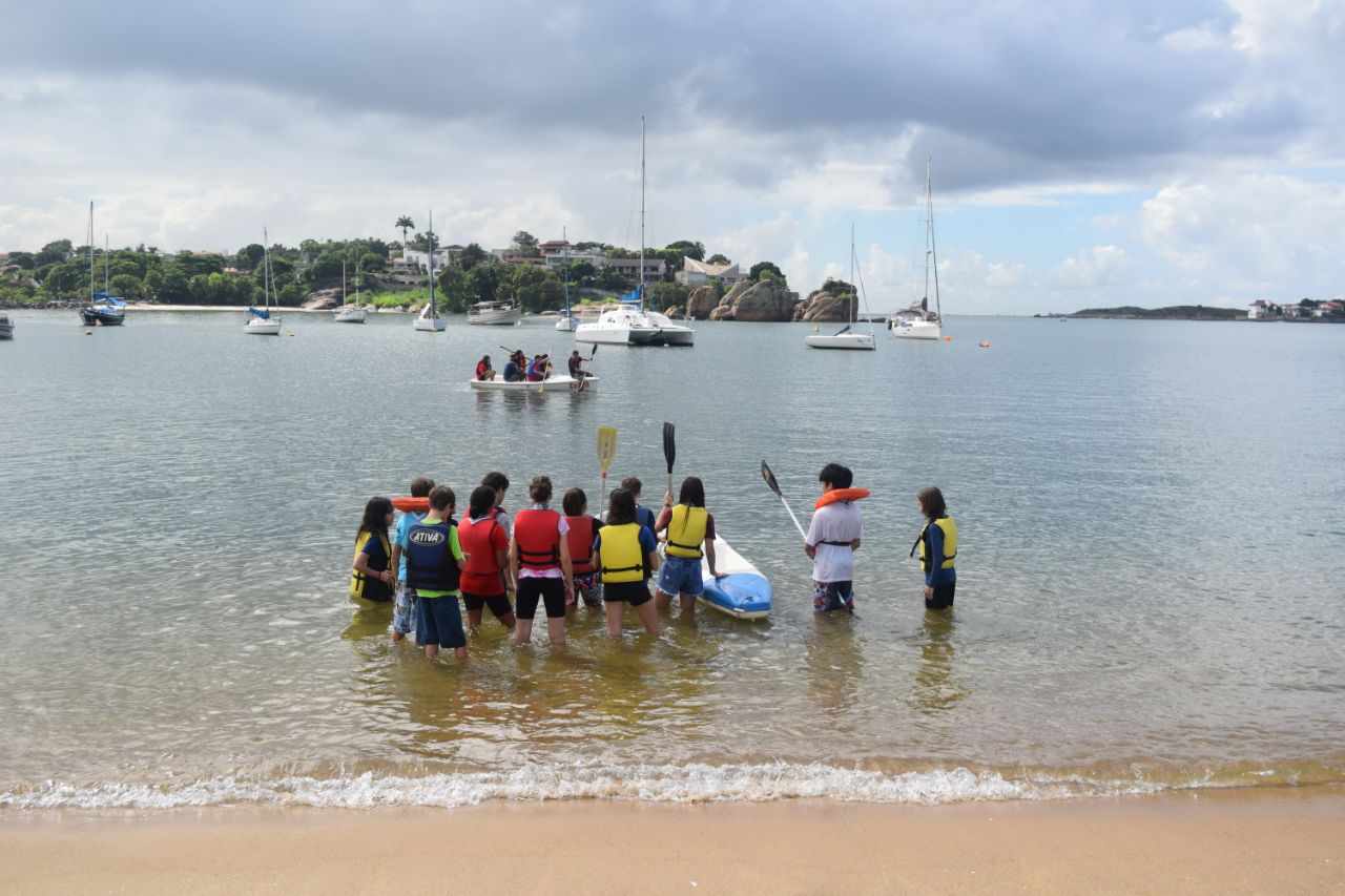 Devido ao tempo e também à falta de vento eles não conseguiram velejar, mas utilizaram remos para a propulsão das embarcações utilizadas na atividade e aprenderam muito sobre a teoria de navegação a vela e em outra oportunidade poderão utilizar esses conhecimentos na prática.