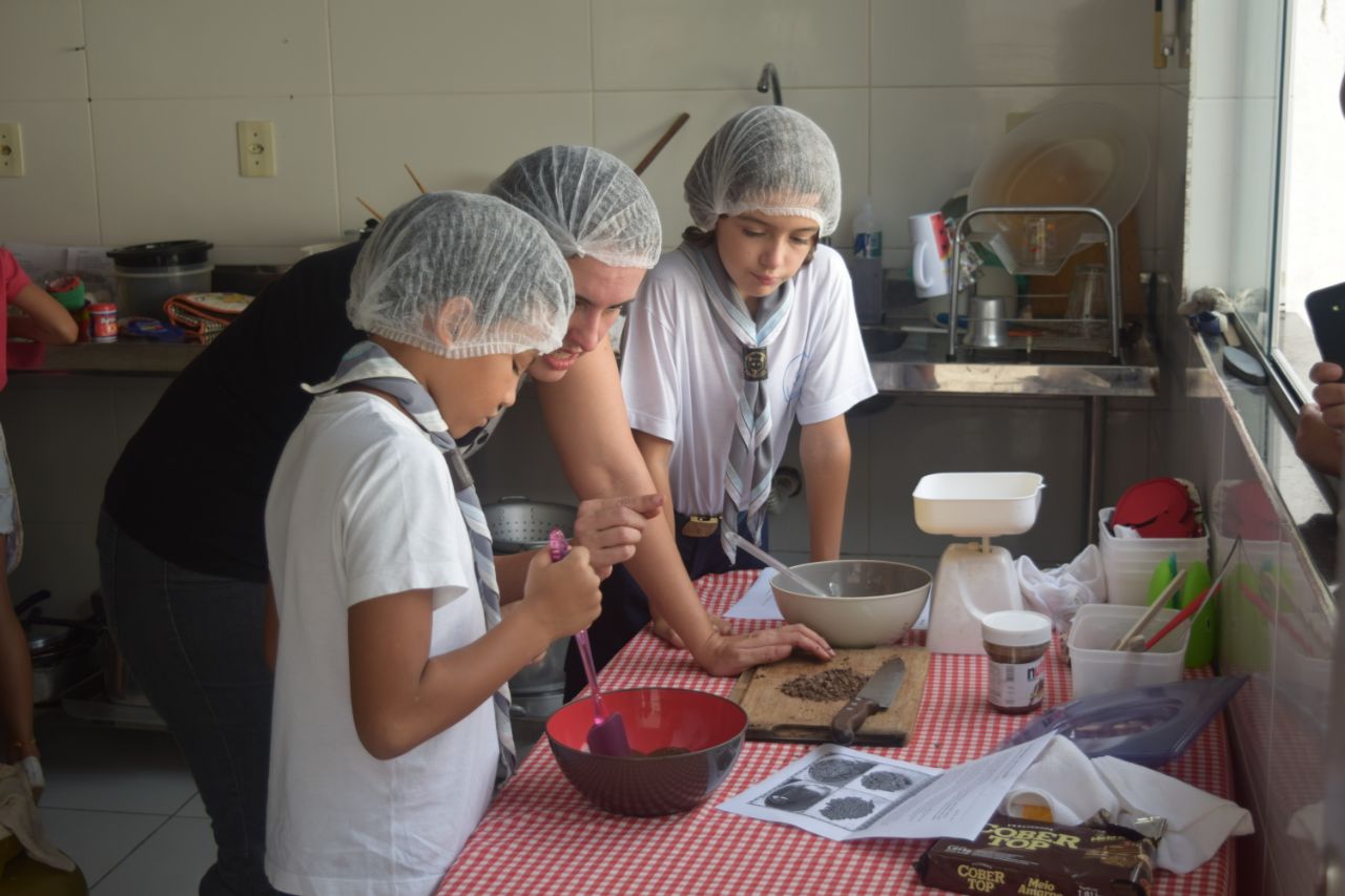 A interação dos lobinhos fazia parte do aprendizado. Eles se organizaram, dividiram as tarefas e colaboraram uns com os outros. Outra preocupação dos pequenos era com a higiene. Na hora de manipular os alimentos, usaram touca e avental.