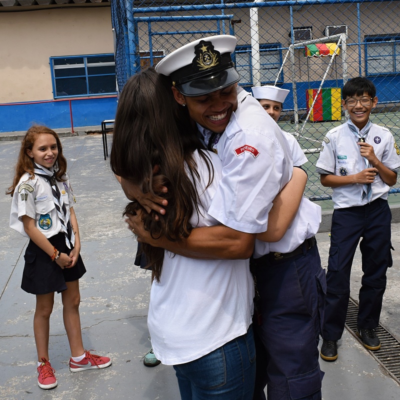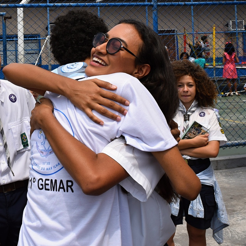 Quem também nos emocionou com seu gesto de generosidade foi à escoteira Thamirys Francez que é “madrinha” dos dois. Foi através dela que esses jovens conheceram o 11º/ES Grupo Escoteiro do Mar Ilha de Vitória e resolveram fazer parte do Grupo. Thamirys falou da alegria de tê-los no grupo e desejou vê-los progredir a cada dia neste movimento que tanto contribui para o crescimento e desenvolvimento dos jovens. Essas duas indicações da Thamirys representam também passos importantes na conquista de um novo distintivo de recrutadora.