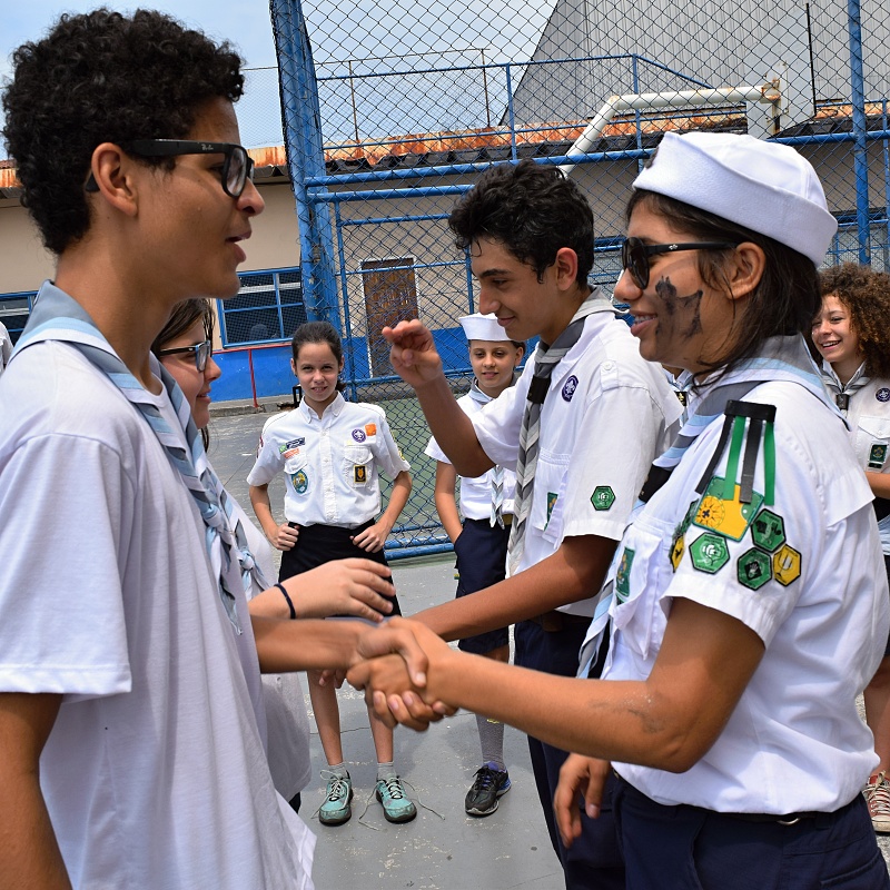 Já no final das atividades, tivemos ainda dois jovens integrados (ou investidos) no Ramo Escoteiro. Para surpresa de Maria Eduarda Niemeyer e Bruno Diniz, chegou o dia de colocar o lenço e poder representar o escotismo perante a comunidade da qual fazem parte. Os jovens ficaram emocionados com as palavras do Chefe Richardson, que os parabenizou pelo comprometimento e participação atuante no grupo e ressaltou que são merecedores de usar o lenço do Grupo.