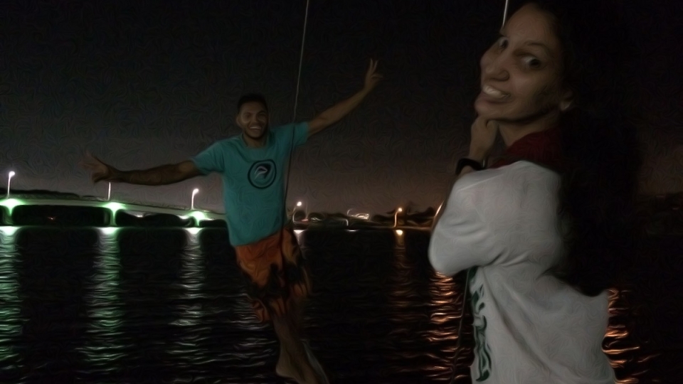 Vocês podem estar estranhando que a Chefe Thais tenha participado dessa noite no barco, já que ela não é do Ramo Sênior. Nessa atividade era necessário que uma chefe mulher estivesse presente para acompanhar as meninas do grupo, e como o a Chefe Francine não estava em condições de participar, a Chefe Thais se voluntariou para embarcar com os seniores nessa jornada … aliás … nessa noitada [icon name=”moon-o” class=”” unprefixed_class=””], e assim pode passar pela sua primeira experiência de virar uma noite embarcada em um veleiro escoteiro.