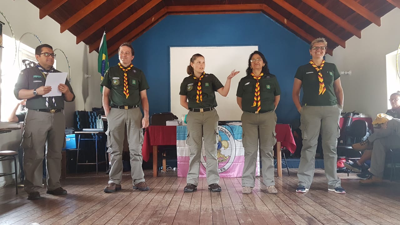 Chefe Aldrey, nossa Diretora de Comunicação, somou-se à nossa comitiva na manhã de sábado. Lá, ela teve a oportunidade de conhecer diretores da UEB-ES, além de escotistas e dirigentes dos demais Grupo Escoteiros do Estado.