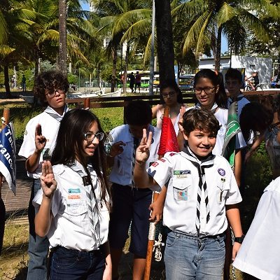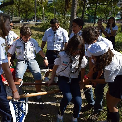 Lobinhos, escoteiros e pioneiros realizaram suas atividades em nosso local de encontro, enquanto os seniores se encontraram do outro lado da Ilha de Vitória para uma atividade de trilha ecológica em uma montanha da Mata Atlântica.