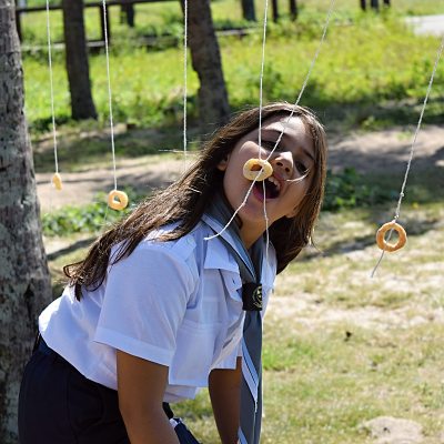 Na sequência, os escoteiros realizaram atividades de integração que exploraram três áreas de desenvolvimento dos jovens: afetivo, caráter e físico. Os jovens escoteiros foram divididos em duas equipes escolhidas aleatoriamente, as quais foram denominadas pelos próprios componentes das equipes como “Baleia Voadora” e “Unicórnios Alados Marinhos”. As duas equipes brincaram de “A Ponte da Cobra” e “Esteira Humana”.