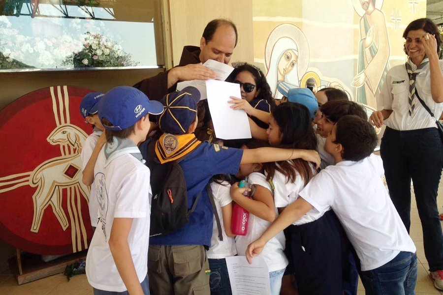 O Frei Paulo Roberto seguiu a frente do grupo, cercado de lobinhos curiosos e atentos às suas explicações. A cada curva, uma grande oportunidade de meditação, oração e agradecimento. Cheio de encantos, cercado pelo verde de árvores seculares, pelas sete voltas, a subida pelo caminho fantástico, segundo o Frei Paulo Roberto, era o início da celebração, momento de agradecer a vida, a grandeza das pequenas coisas e as nossas conquistas.
